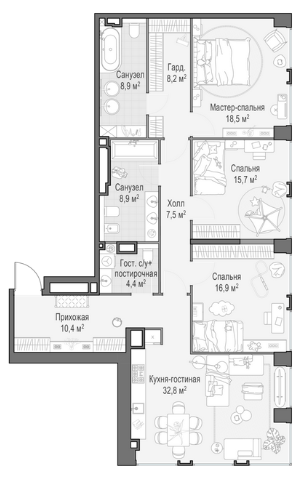 маленьких жителей с учётом современных открытий в области психологии и педагогики. Почувствуйте себя родителями, которые всё успевают и при этом дают своему ребёнку самое лучшее. В считанных шагах от вашей квартиры детский сад и частная школа.