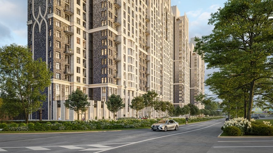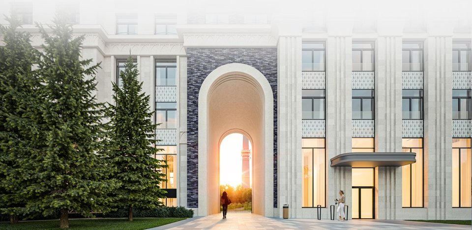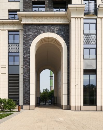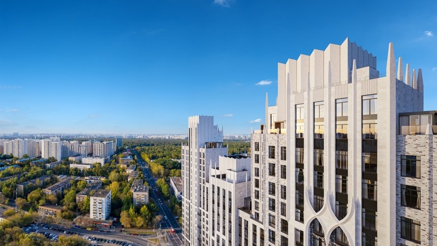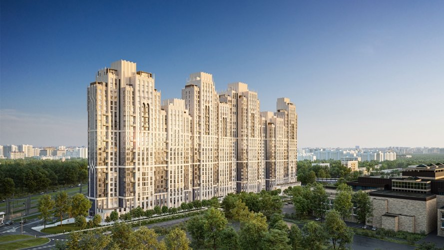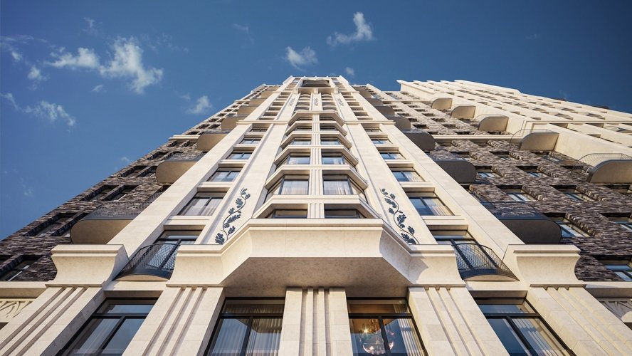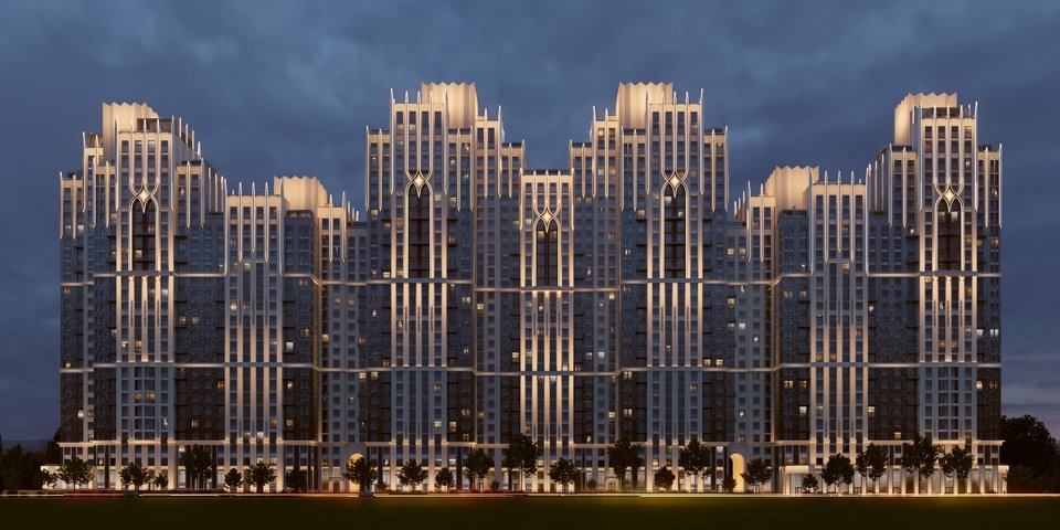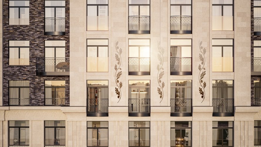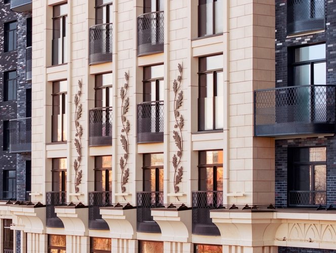 Стремящиеся ввысь пики, элегантный декор, изящные декоративные элементы балконов, арки, карнизы и ризалиты, большие панорамные окна и натуральные материалы фасадов — каждый элемент подчёркивает статус и красоту дома.