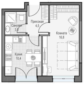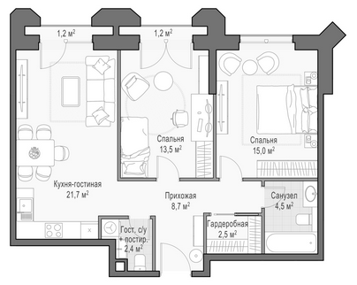 Площадь от 37.8 м2