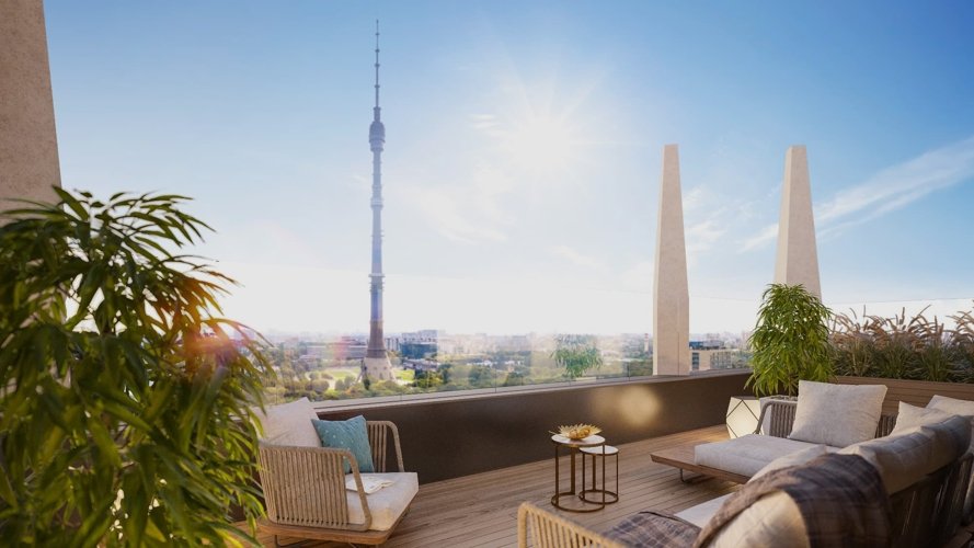 Дом «Достижение» — архитектурное событие современной Москвы. Близость к парку ВДНХ, одному из самых ярких образцов монументальной архитектуры, вдохновила нас на создание проекта, созвучного его духу.